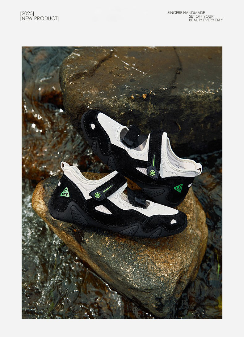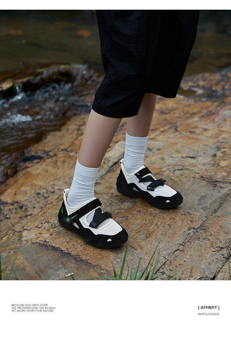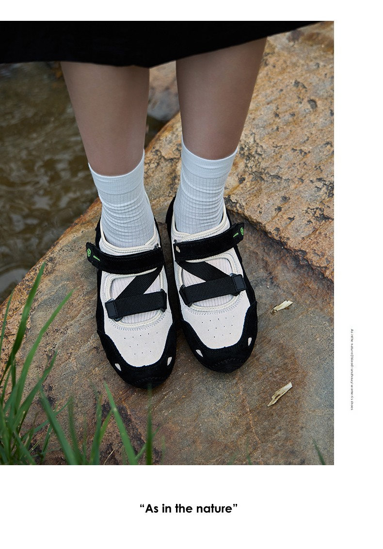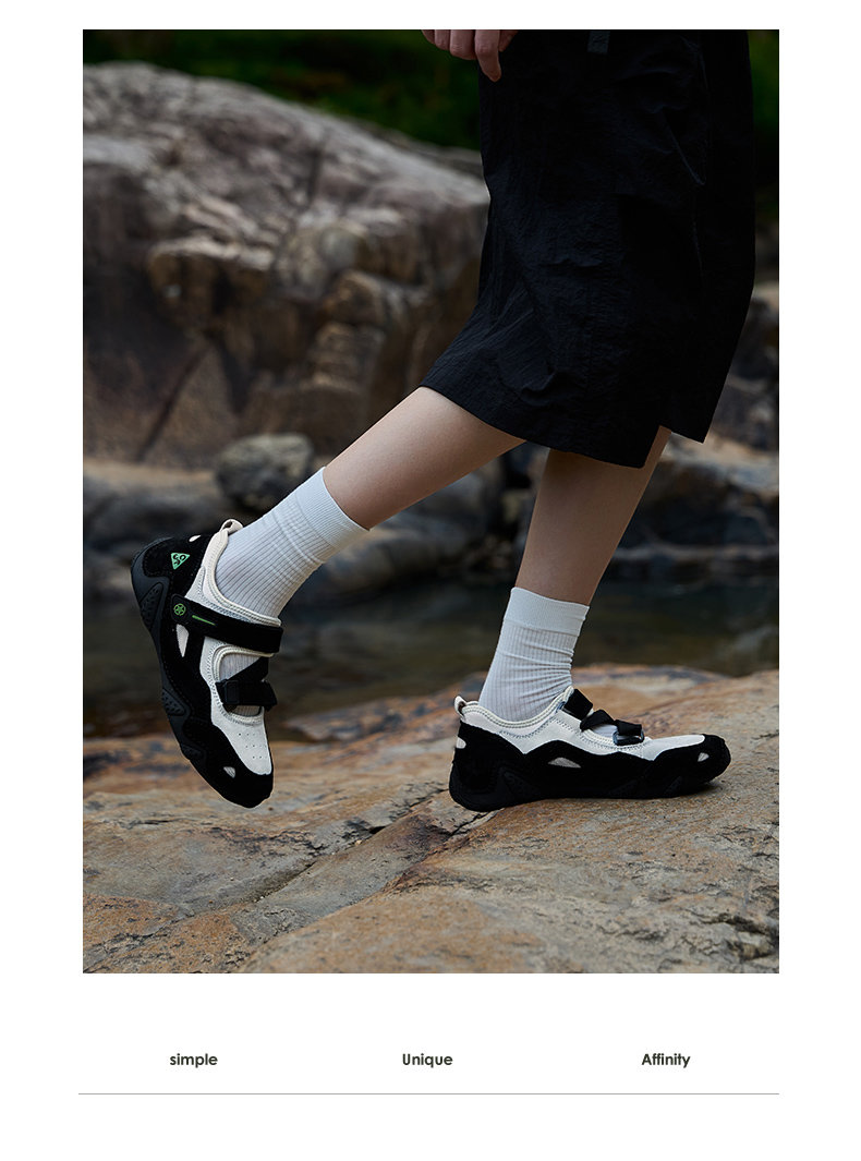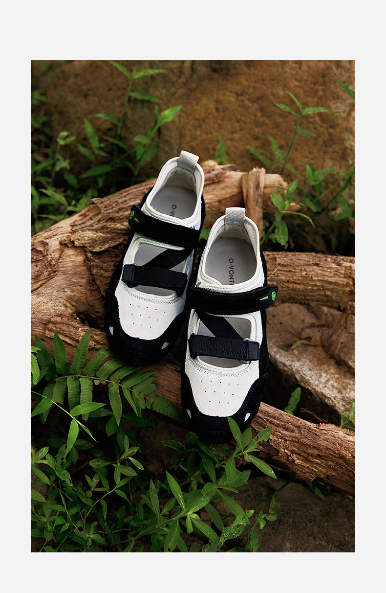 Playful Design: Classic strap upper features asymmetrical design for a fresh, slightly mischievous look.