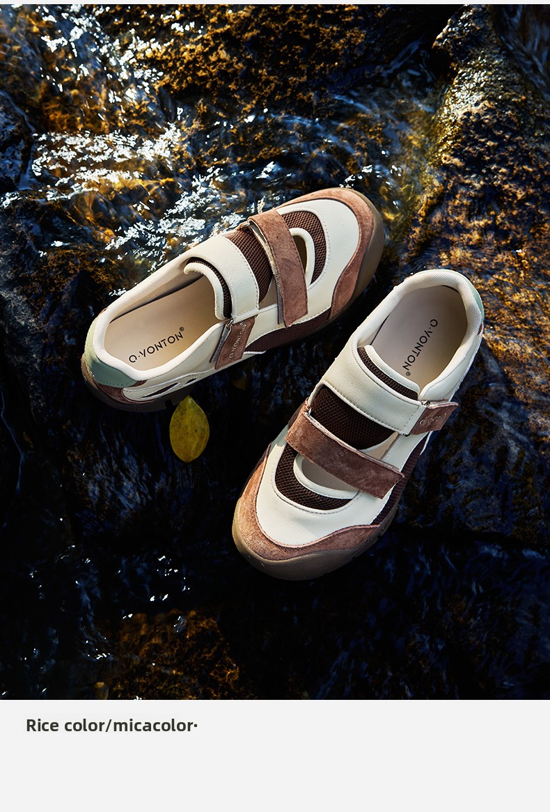 Trending Style:Q·VONTIN Thick soled Casual Sports Shoes for Women, Versatile Velcro Color blocked Mary Jane Shoes for Women, Autumn and Winter, Small and Ugly Cute Shoes