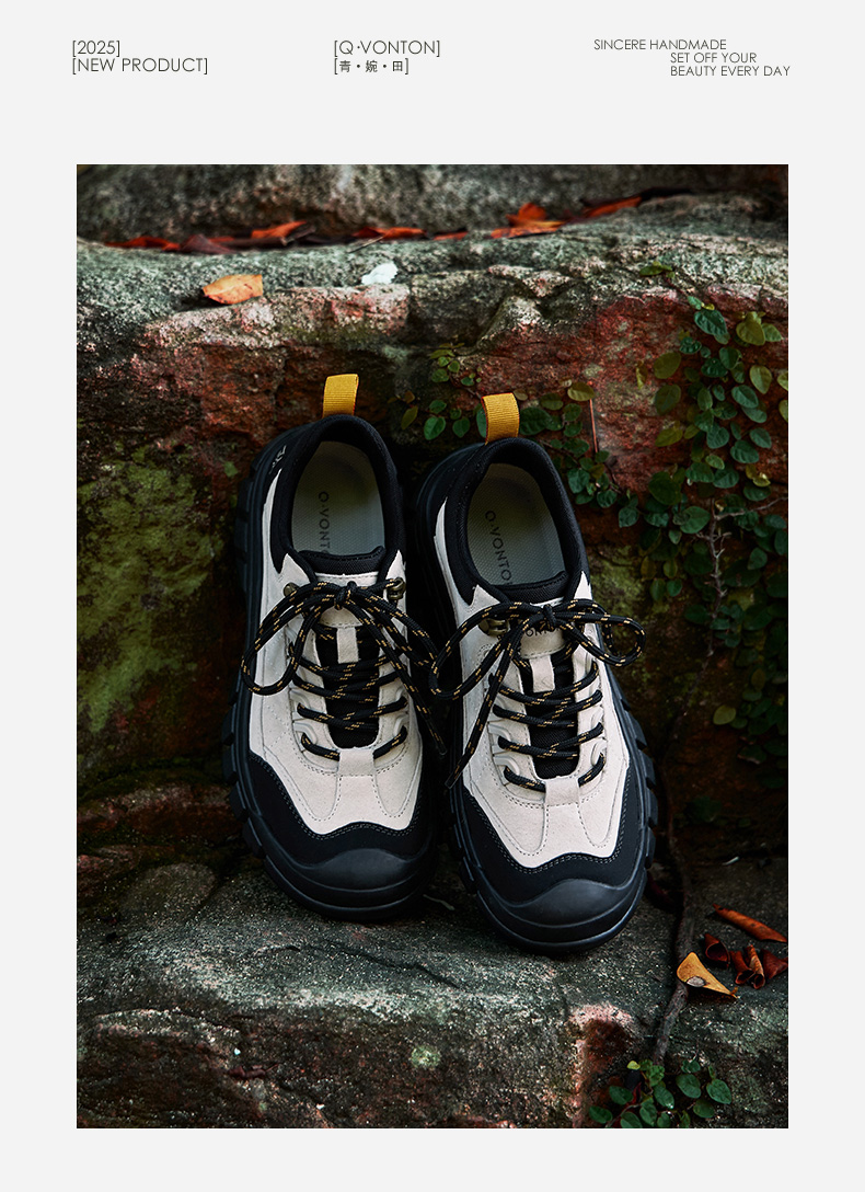 Trending Style:Q·VONTIN Thick soled Outdoor Hiking and Mountaineering Shoes for Women Autumn New Height Raising Women’s Shoes Anti slip and Wear resistant Casual Sports Shoes