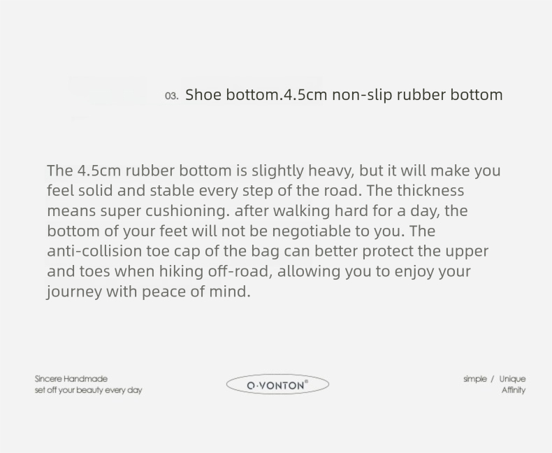 The fine bottom flowers, deep and tough teeth, slippery steps, rough cement ground, and rough stones in the wild firmly grip the ground, making you walk steadily