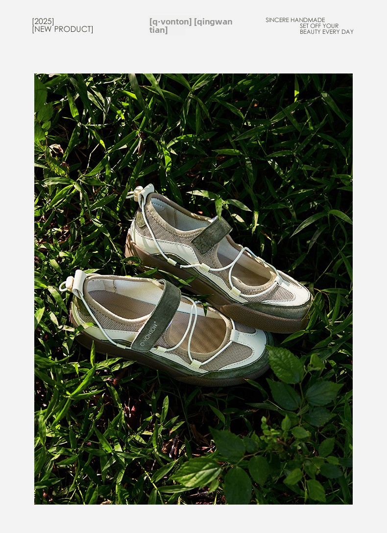 Trending Style:Q·VONTIN Thick soled Sports Mary Zhen Shoes Women’s Autumn Velcro Casual Board Shoes Versatile One Step Training Shoes
