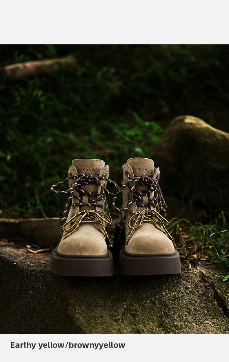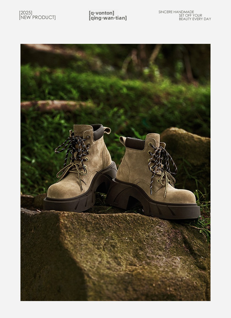 Trending Style:Q·VONTIN Real leather thick soled short boots for women, small stature, height increasing retro Martin boots for women in winter 2025, new high-heeled women’s boots