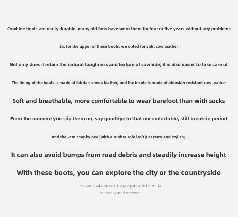 Reliable Foundation: Not only does it retain the natural toughness and texture of cowhide, but it also provides better care for the fabric and sheepskin inside the boots,
