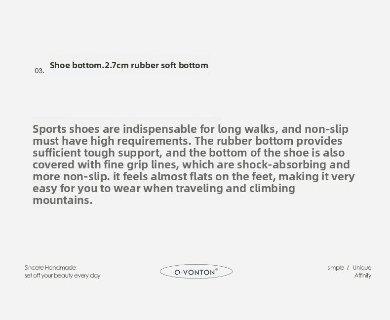 Versatile Sole: Features Q·VONTON’s signature rubber sole for shopping, running, or any activity you desire.